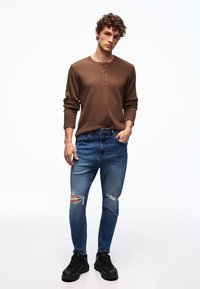 BershkaRIPPED - Blugi slim fit - light blue