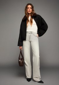 - Modelul nostru are 175 cm înălțime și poartă mărimea 36xR(regular)