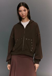 Bluză de molton cu fermoar - brown