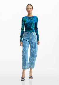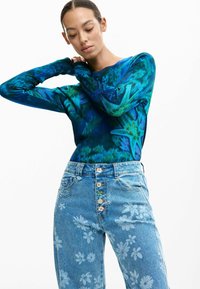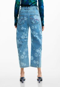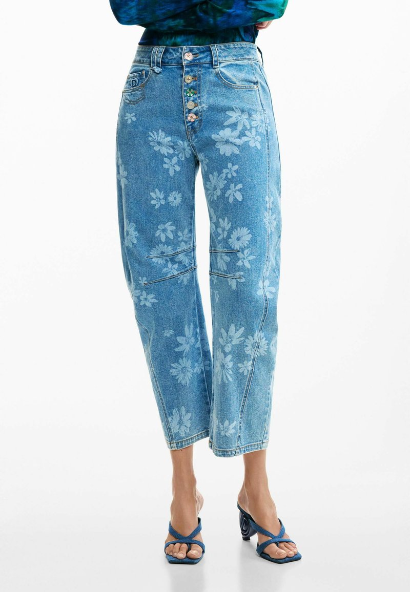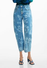 FLORAL - Blugi mom fit - blue