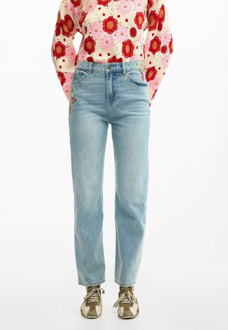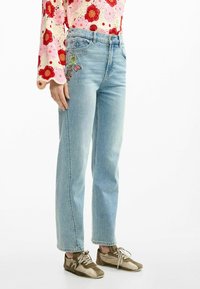 WITH FLOWERS - Blugi drepți - blue