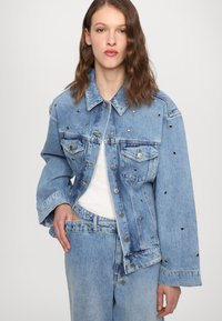 DETTACHED BELTED CHROMA - Wide leg - light blue