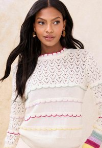 REGULAR FIT - POINTELLE STITCH LONG SLEEVE CREW NECK - Pulover - cream rainbow scallop