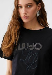 WITH GEMSTONE APPLIQUÈ - Tricou cu imprimeu - BLACK