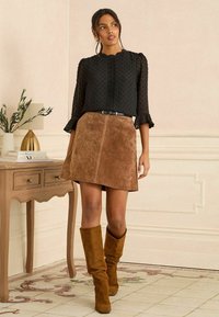 REGULAR FIT - 3/4 FLUTE SLEEVE DOBBY - Bluză - black