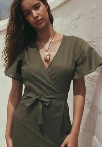 REGULAR FIT - FLUTTER SLEEVE WRAP MAXI DRESS . - Rochie maxi - khaki green