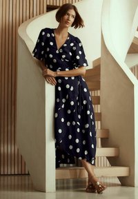 REGULAR FIT - WRAP MIDI - Rochie de zi - navy white polka dot