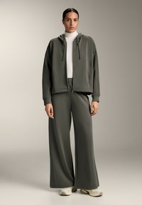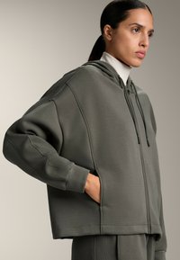 BRUSHED HOODED WITH RIB DETAILS - Bluză de molton cu fermoar - grey