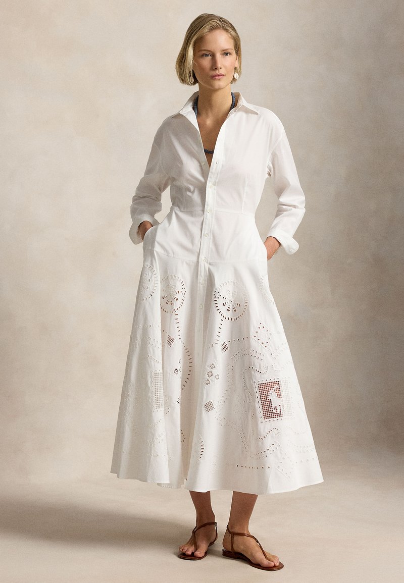COTTON EYELET SHIRTDRESS - Rochie tip cămașă - white